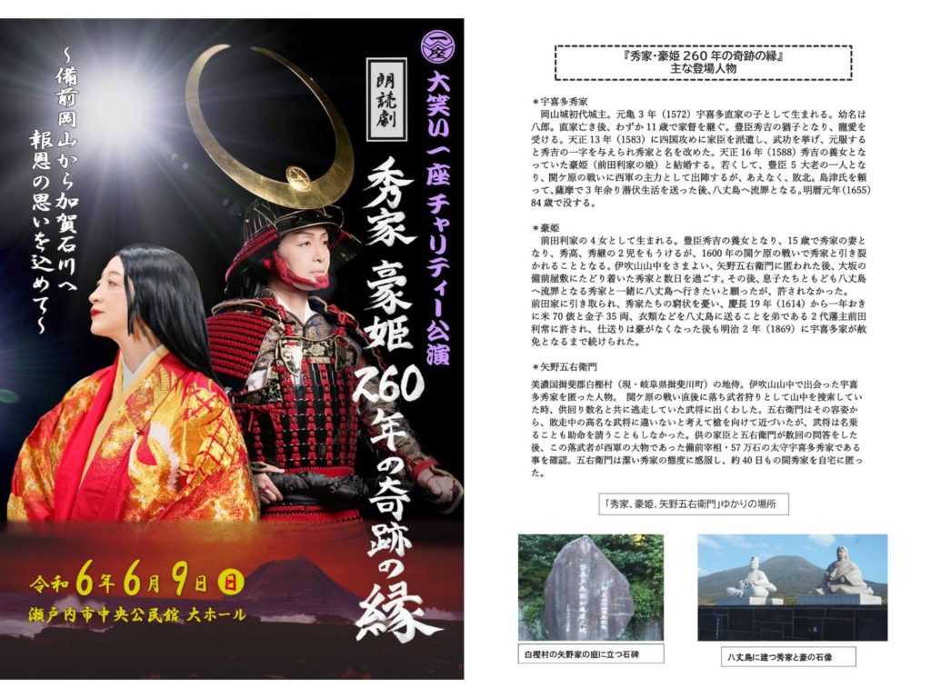 義援金は6月18日(火)に、座長そして秀家と豪姫により瀬戸内市社会福祉協議会へお渡しいたしました。