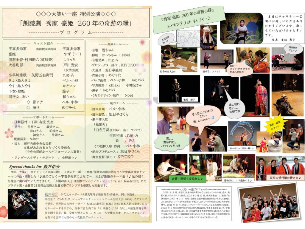 未分類6月9日(日)に上演したチャリティー公演には、雨天にも関わらず超満員の510名ものお客様にご来場いただきました。